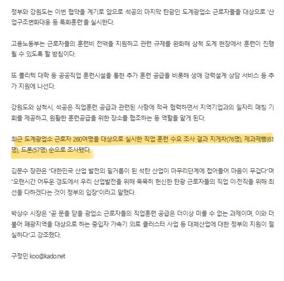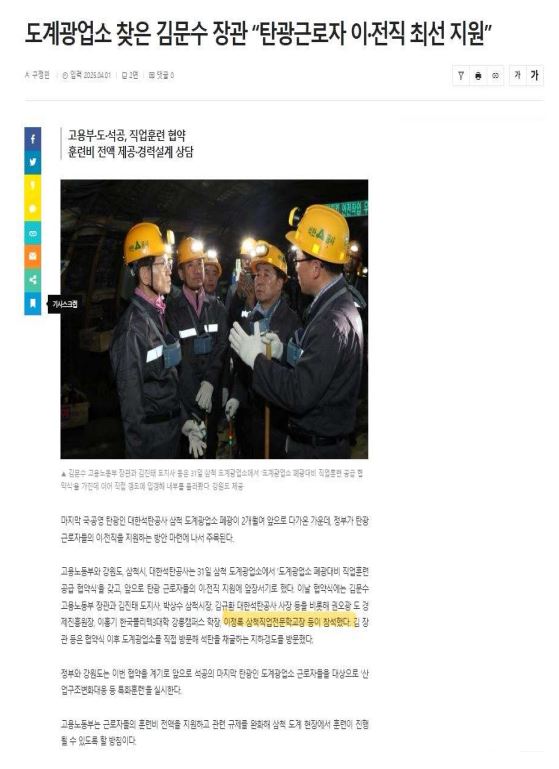 2025³â 3¿ù 31ÀÏ µµ°è±¤¾÷¼Ò Æó±¤±Ù·ÎÀÚ Á÷¾÷ÈÆ·Ã ¾÷¹« Çù¾à½Ä¿¡ ³ëµ¿ºÎÀå°ü ±è¹®¼ö, °¿øµµÁö»ç ±èÁøÅÂ, »ïô½ÃÀå ¹Ú»ó¼ö, ´ëÇѼ®Åº°ø»ç»çÀå µîÀÌ Âü¼®ÇÏ¿´½À´Ï´Ù.