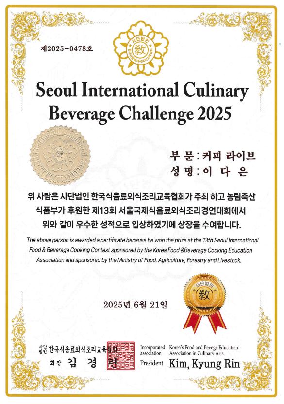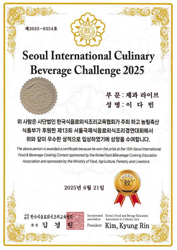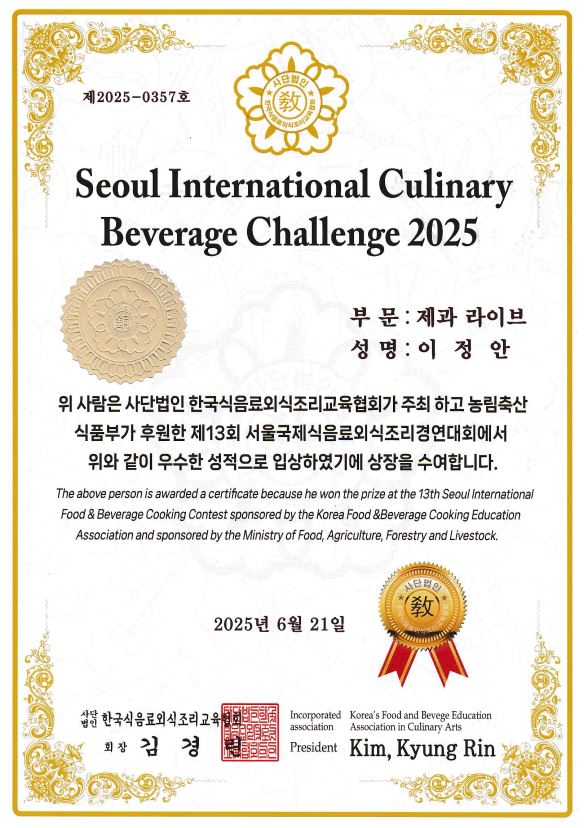 ¿ì¸® Çб³ ÀÏ¹Ý°í Æ¯È°úÁ¤ ÇлýµéÀÌ 2025.06.21 °³ÃÖµÈ Á¦13ȸ 2025 ¼¿ï±¹Á¦½ÄÀ½·á¿Ü½ÄÁ¶¸®°æ¿¬´ëȸ¿¡ Âü°¡ÇØ ¶Ù¾î³ ½Ç·ÂÀ» ¹ßÈÖÇÏ¿© **ÃÖ¿ì¼ö»ó, ±Ý»ó, µ¿»ó**À» ¼ö»óÇÏ´Â Äè°Å¸¦ ÀÌ·ç¾ú½À´Ï´Ù.